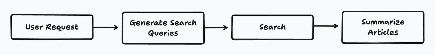A perfect example of a workflow that gained traction quickly and was actually useful is Perplexity. Obviously, I’m oversimplifying all the details that go into building Perplexity, but this was their basic workflow: